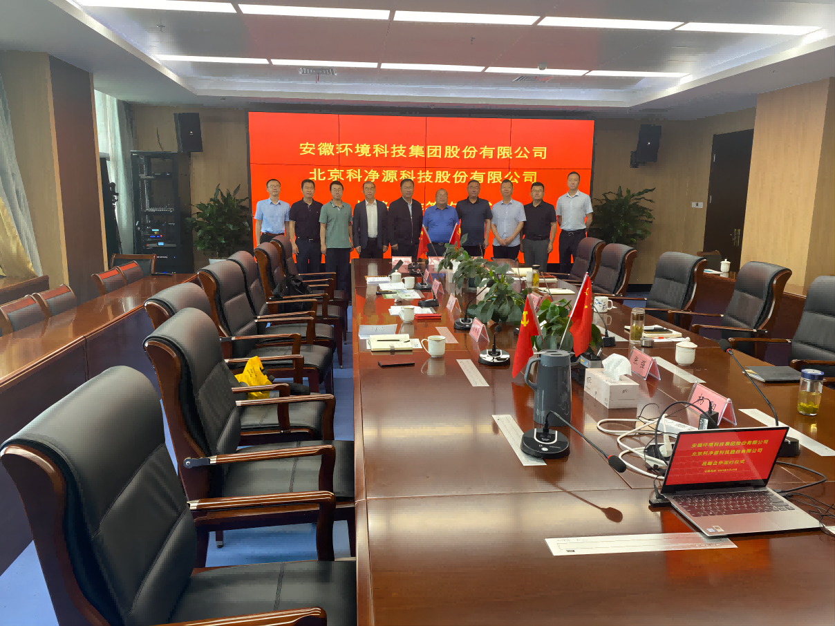 2023年6月19日,安徽環(huán)境科技集團(tuán)股份有限公司(以下簡(jiǎn)稱“安徽環(huán)境安徽環(huán)境“)與北京科凈源科技股份有限公司(以下簡(jiǎn)稱“科凈源”)戰(zhàn)略合作簽約儀式在合肥安徽環(huán)境舉行,安徽環(huán)境黨委書記、董事長(zhǎng)方降龍,黨委副書記、總經(jīng)理?xiàng)畎斗?,黨委副書記程群,相關(guān)職能部門負(fù)責(zé)人等出席簽約儀式??苾粼炊麻L(zhǎng)葛敬、高級(jí)合伙人陳建、安徽區(qū)城市合伙人唐培遠(yuǎn)、董事長(zhǎng)助理張亦馳出席簽約儀式。