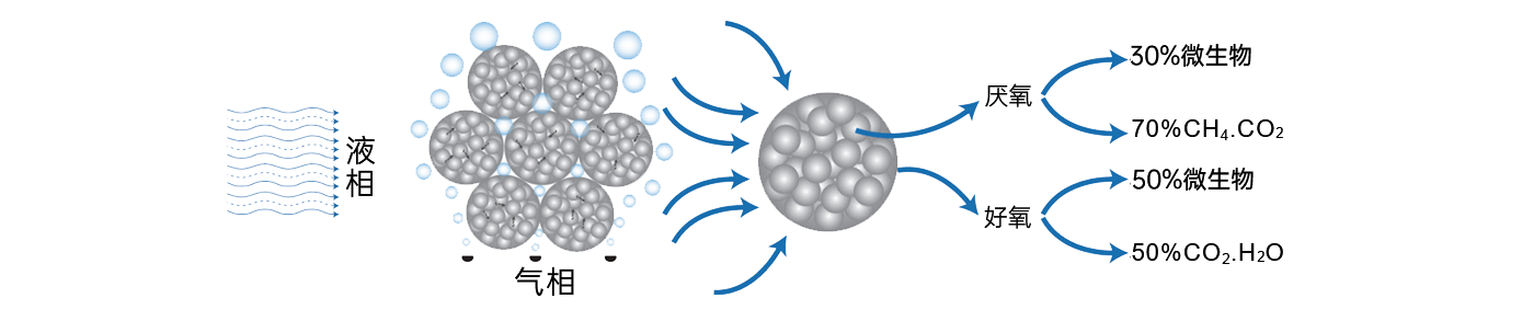 速分生物處理技術(shù)是將流體力學(xué)中的“流離”原理與微生物處理技術(shù)有機(jī)結(jié)合,利用特殊的“固 - 液 - 氣”三相運(yùn)動(dòng),使污水中的懸浮固體顆粒聚集在速分生化球外部,在沿速分生化池水流方向形成完整生物鏈,反復(fù)進(jìn)行“好氧 - 厭氧 - 好氧”的耦合生物處理過(guò)程。將通用污水生物處理過(guò)程中單一生物環(huán)境創(chuàng)新為多變的生物環(huán)境,在提高污水處理效率的同時(shí)也實(shí)現(xiàn)了污泥原位減量。